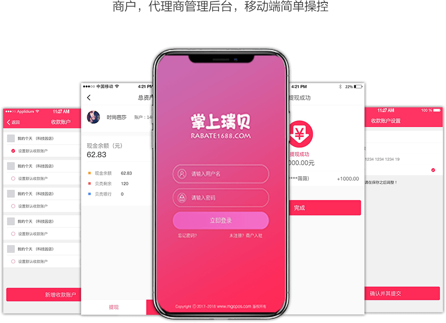 可配置提现银行账户,方便商户提现时款能进入到该账户去